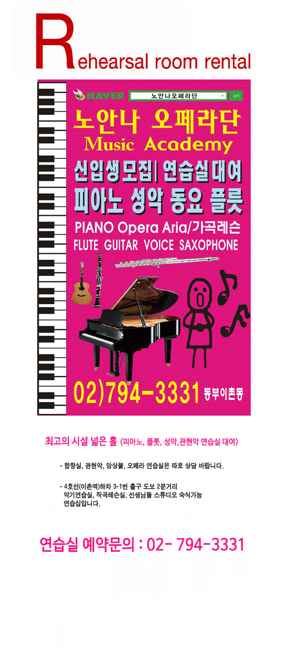 ÁÖ¼Ò: ¼¿ï ¿ë»ê±¸ µ¿ºÎÀÌÃ̵¿ 301-153¹øÁö ³ë¾È³ª¿ÀÆä¶ó´Ü °Ç¹° T.F 02-794-3331